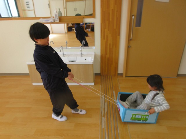 - こども 2026.03.27 こども支援センターつむぎ(児童発達支援)ダンボールカーを楽しみました🚗 ダンボールで作った車に乗って遊びました! 紐を使って、お友だちが乗っている車を交代しながら引っ張り、ドライブごっこを…