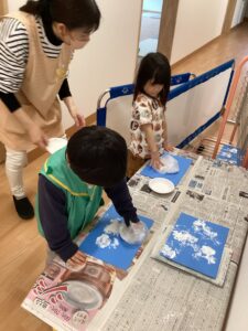 いつもと違った素材のスタンプに興味津々の子ども達。