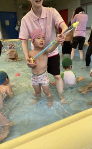 少しずつプールに慣れ、楽しみにする姿が見られるようになりました!