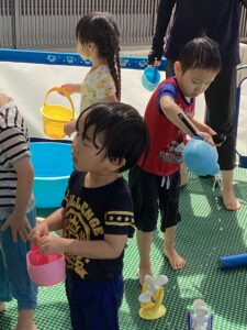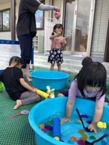 7月から8月まで水あそびを行いました。