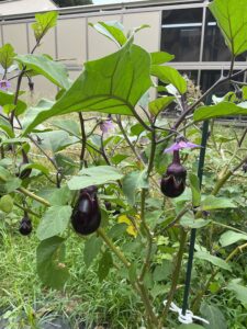わかばの畑では最後のなすが育っています。給食に時々入っています。