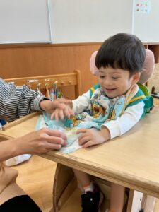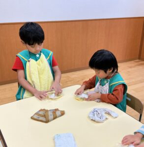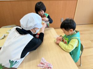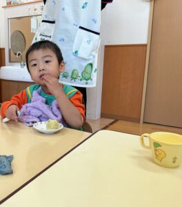 HOME > 最新のニュース > こども > こども発達支援センター > こども発達支援センターわかば(単独通所) 茶巾絞り(おやつ作り)をしました。