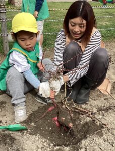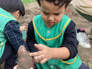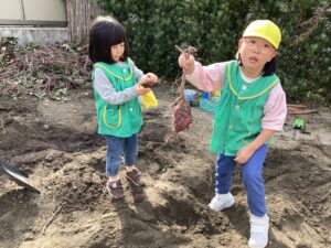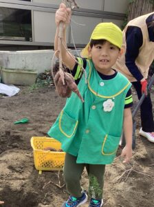見慣れないお芋にちょっとびっくりしていましたが、芋ほりを楽しんでくれました。