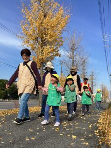 むつみの近くの道のイチョウ並木が綺麗な黄色の葉っぱになり、いつもの道がまるで黄色の絨毯を敷いたようになっています。