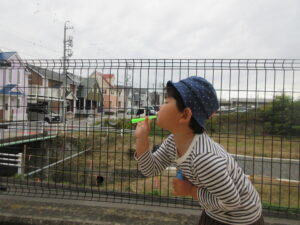 思わず夢中になる、楽しいしゃぼん玉遊びになりました👍