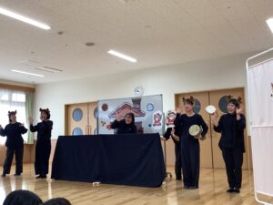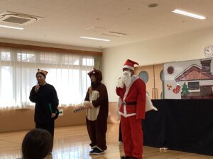 「あわてんぼうのサンタクロース」の歌にあわせたペープサートや楽器を楽しみました。