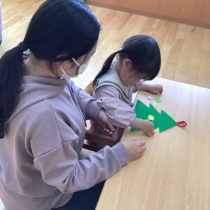 こども発達支援センター親子通所(めばえ)では、12月17日(水)、19日(金)に、クリスマス会を行いました。