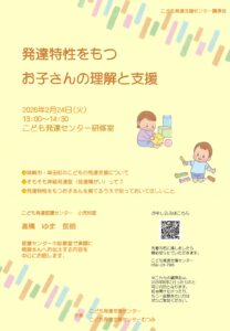 2月24日(火)に『発達特性をもつお子さんの理解と支援』というテーマで講演会をおこないます。