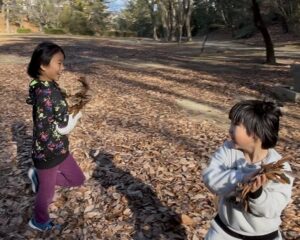 みどりの子どもたちと公園に行くと、たくさんの落ち葉を発見!🍂