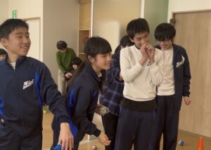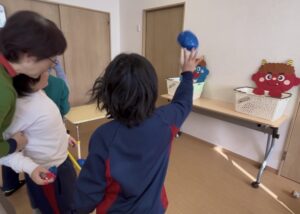 今年の節分は、鬼の玉入れゲームを行いました。