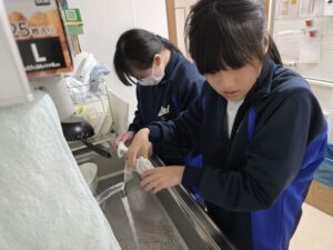 お掃除の最後はお片付け!自分たちで使った雑巾を洗いました。