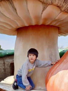 その後、遊歩道を散策し、妖精の棲む浮かぶ島(遊具エリア)で遊びました。