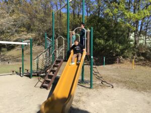 友達と一緒に楽しく走って登って遊びます👍