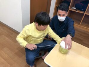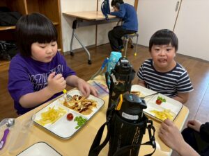 こども支援センターつむぎ(放デイ) お好み焼きを作りました!