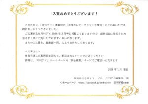 今回初めて、冊子「月間DAY」の作品コーナーに応募したところ、2月号において、入賞することができました。