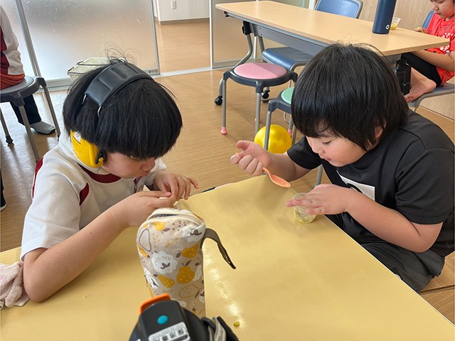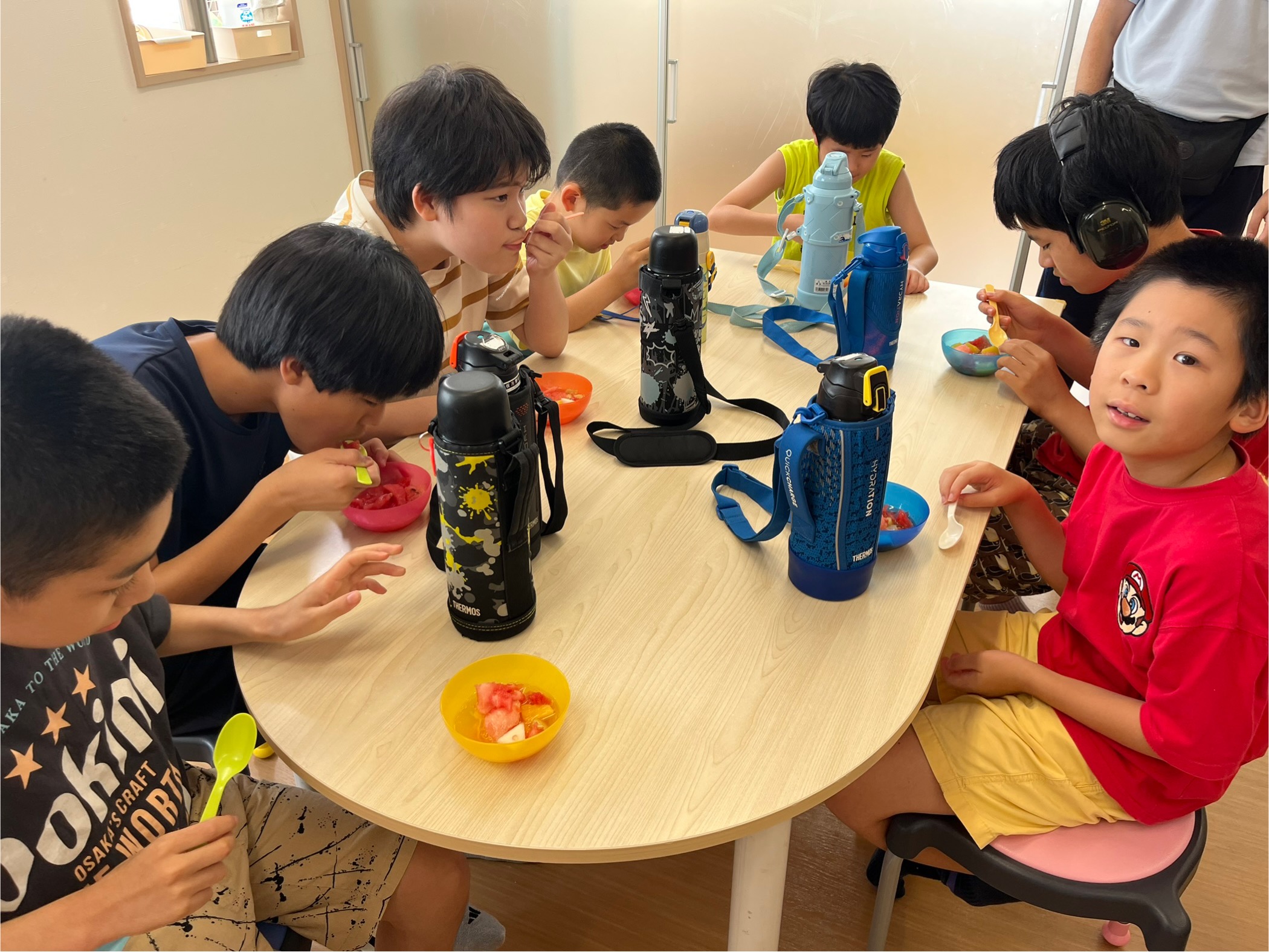 活動頑張ってお腹すいた~。みんなでおやつを食べます。