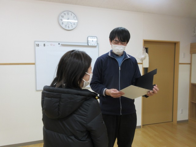 ご家族の送迎で来ていただき、家庭での過ごしかたなど、お話を伺います。