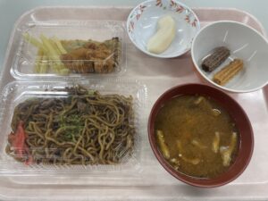 秋まつりをイメージした屋台ごはんで、焼きそばや唐揚げ、ポテトなどをパックに入れました。