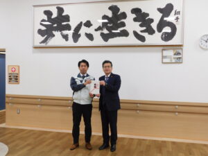 寄贈式ではフタバ産業労働組合田口執行委員長様から「施設を利用される方へのサービスに役立ててください」とお言葉をいただきました。