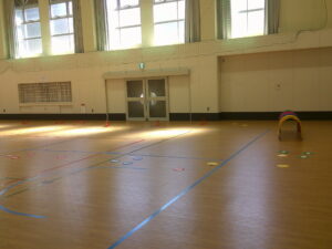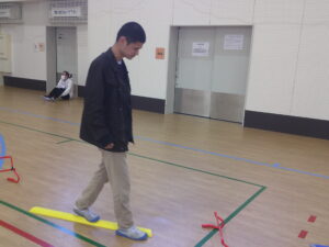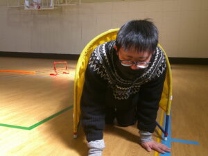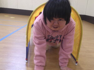 今回はハードル・平均台・トンネル・手形足形の4種目、主に下半身とバランス感覚を養う運動です👍